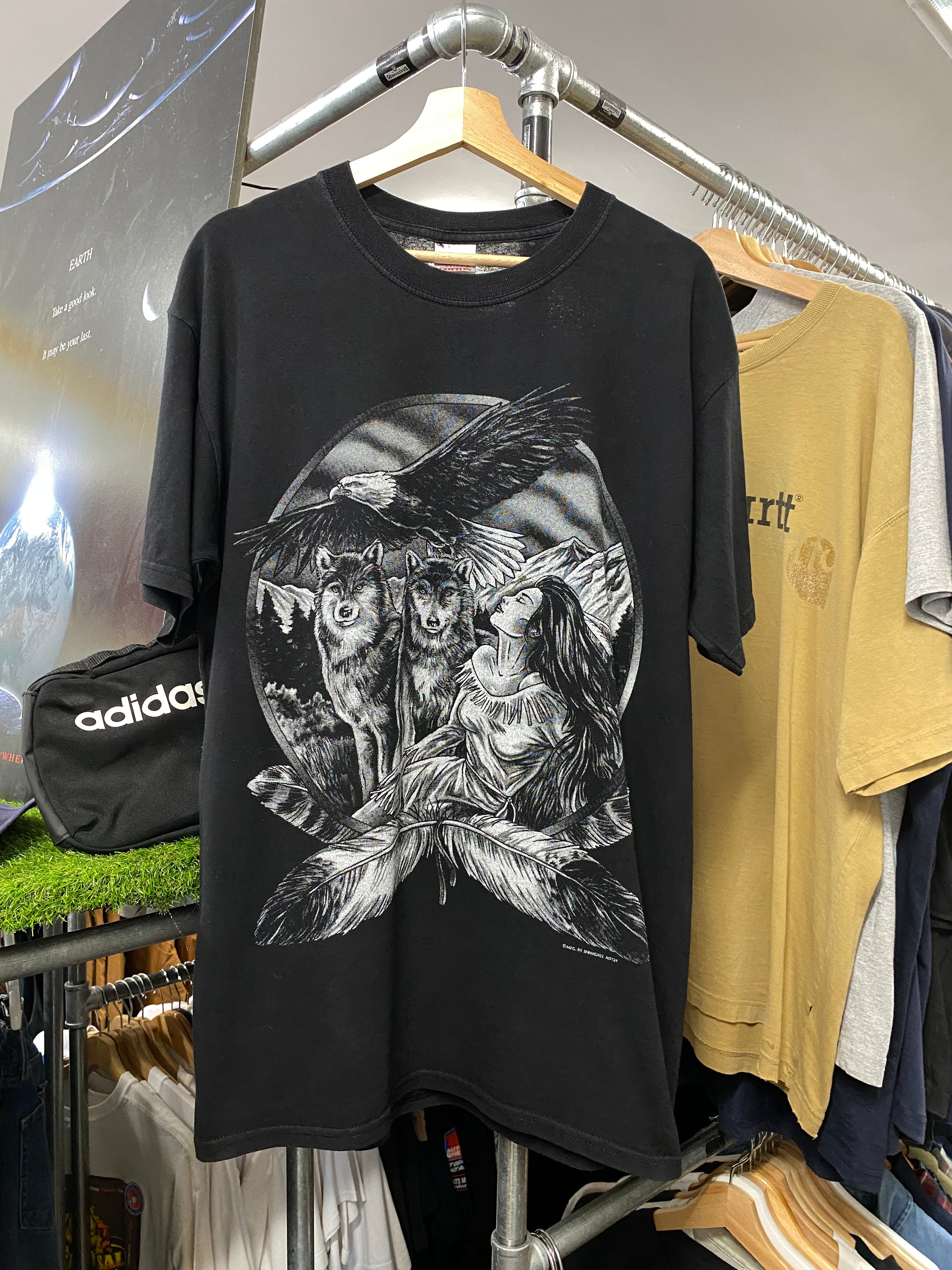 [L] 2000s Native American x Wolves x Eagle Black DS Tee