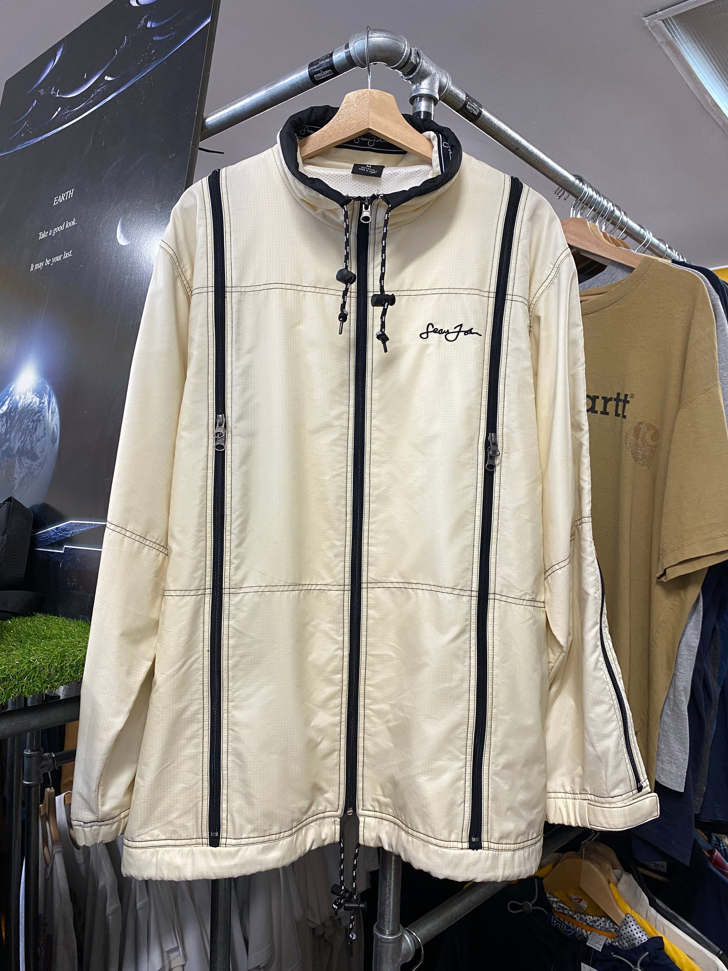 M - 2000s Sean John Multi Zip Cream Zip Up Jacket
