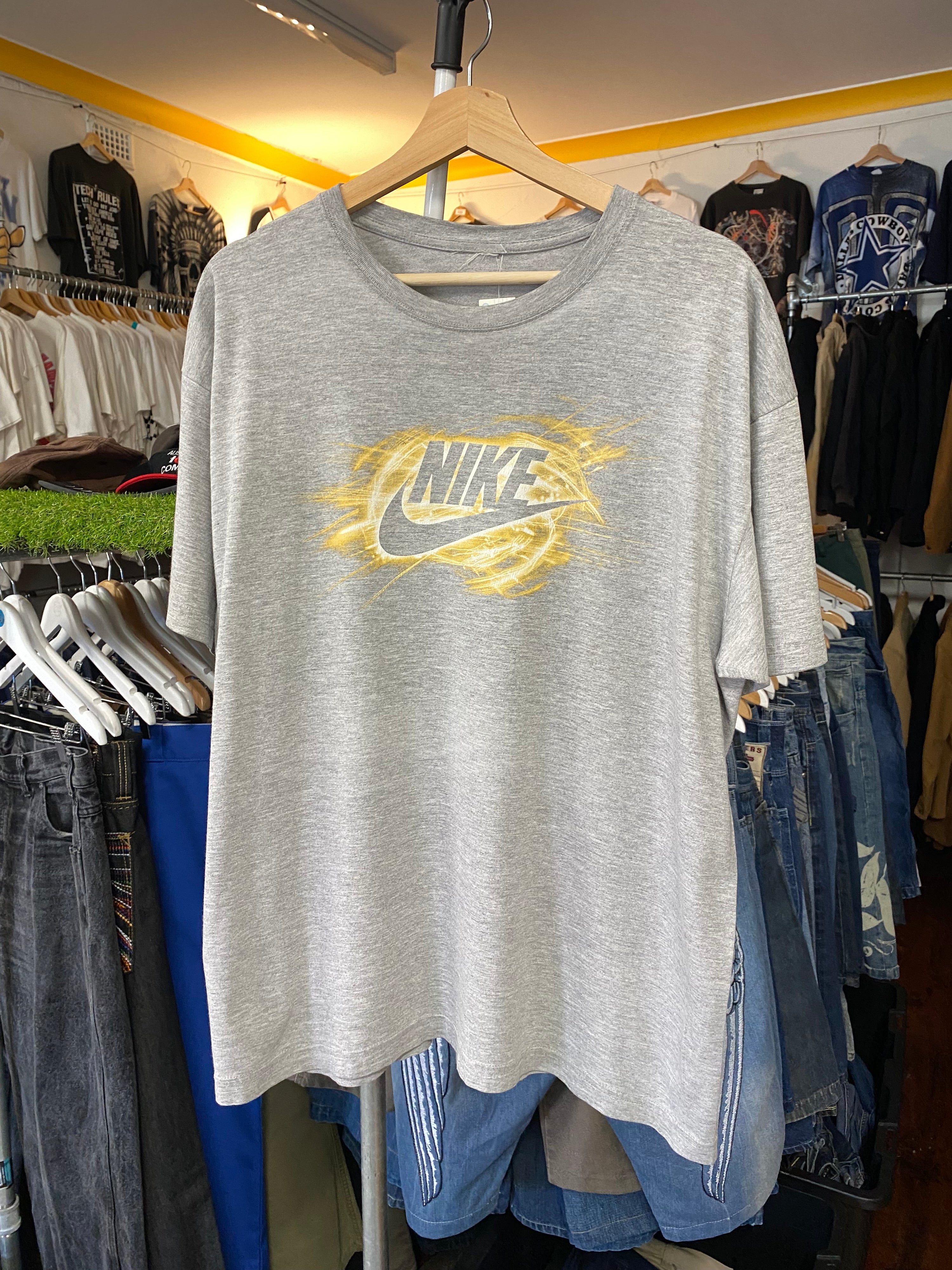 L - Vintage Nike Grey Tee Negative Gold Spellout