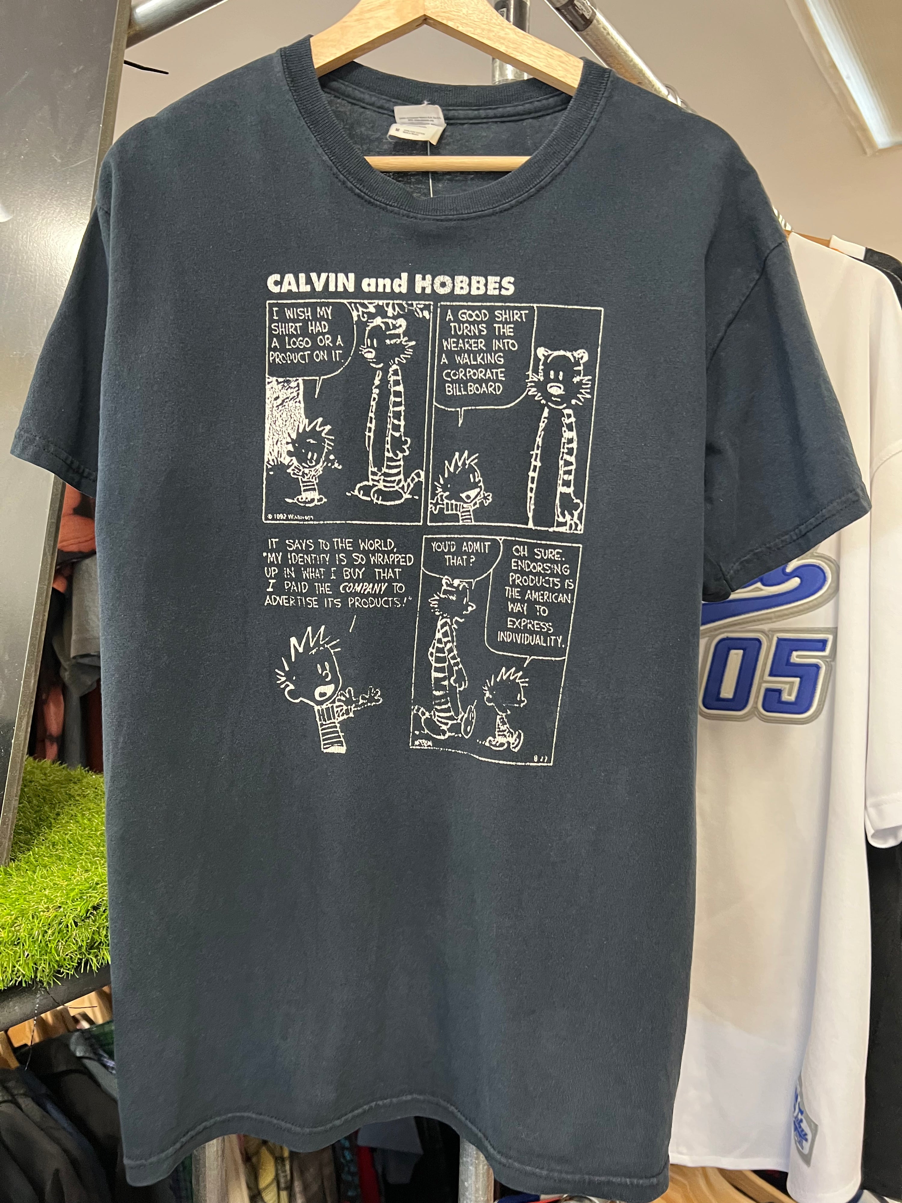 M - 2000s Calvin Hobbes Comic Strip Tee